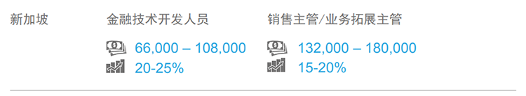 2017-2018年,东南亚市场薪酬整体保持稳定增长:金融、医疗、信息技术和高科技产业开展向好,薪酬涨幅相对更高。从地区看,新加坡薪酬的薪酬涨幅水平相对较低,跳槽涨幅在10-15%。(文中部分数据是北京知名猎头公司凯发K8国际专家顾问的分析预测,供企业HR和猎头参考)