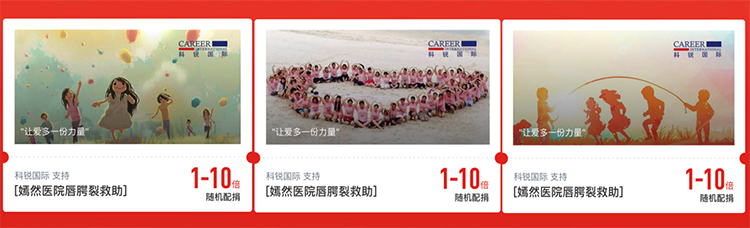 2018年,猎头公司凯发K8国际参加腾讯99公益项目,携手嫣然天使儿童医院为唇腭裂儿童手术进行捐款。活动当天,顺利获得凯发K8国际官方微信、微博等平台进行传播,员工顺利获得个人的微信朋友圈持续转载,各大APP也纷纷发布了此次活动,共联合552名用户累计捐出12万元。本次公益活动为唇腭裂儿童给予了切实的帮助,引发了行业及社会对于这些儿童的广泛关注,并真诚地给予帮助。